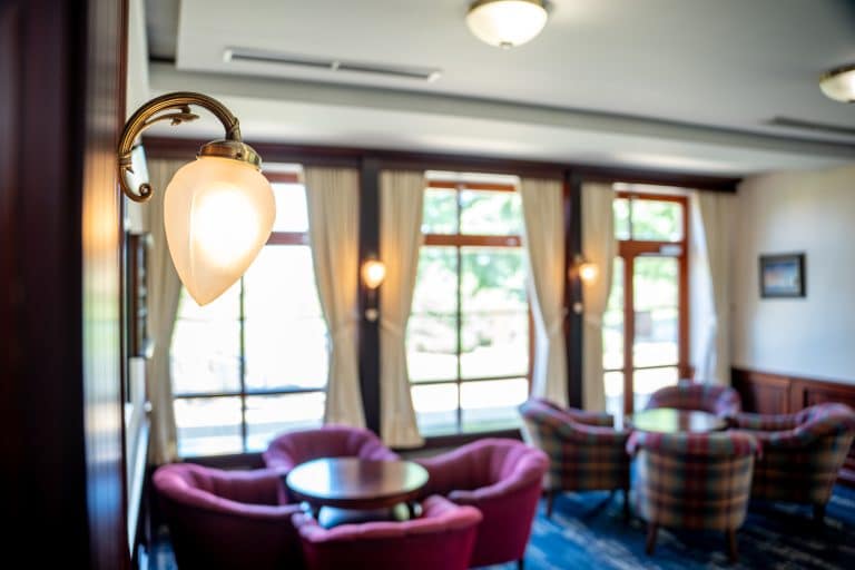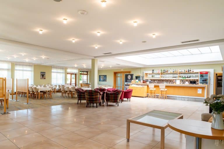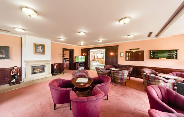Interiér restaurace je navržen tak, aby poskytoval příjemnou a relaxační atmosféru, ideální pro jakoukoliv příležitost – ať už se jedná o romantickou večeři, rodinnou oslavu nebo firemní akci. Prostory umožňují pohodlné posezení a zároveň nabízejí panoramatický výhled na golfové hřiště.