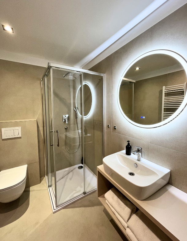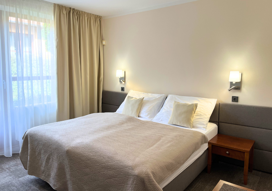 Our double room with an extra bed is theideal choice for families with children looking for comfortable accommodationin Slavkov. The room is equipped with a double bed with an extra bed, whichensures a peaceful and pleasant sleep. There is also a smaller terrace, whichis ideal for relaxing with a morning coffee or an evening glass of wine, aswell as a great place for children to play under the supervision of theirparents.